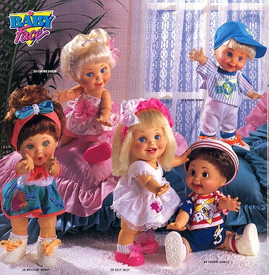 her out and Shot Her, just in case! We walked out through the darkened showroom. In the faint illumination from the doorway, I could see that everything was still in place. The dolls were all posed in some activity or other, at the "playground", or the "beach", having a "picnic", etc., in a make believe world that Judy had created for them. A Baby Face World, that, this time around, had grown to three times the size it was at the first Toy Fair. Other dolls were posed on pedestals, and the walls were covered from floor to ceiling with boxes, some